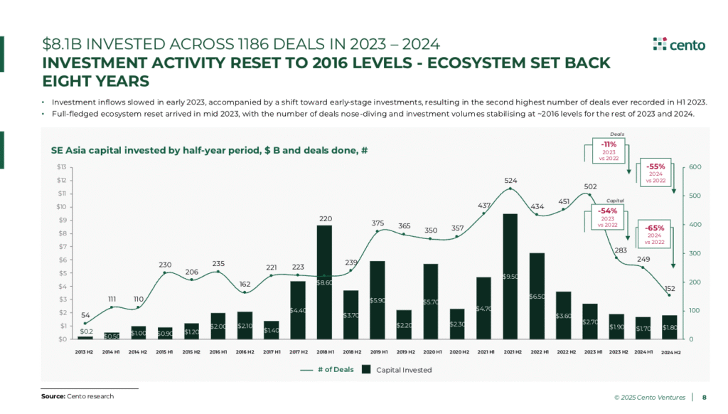 By mid-2023, it was clear that Southeast Asia hadn’t simply cooled to pre-COVID levels—it had reset all the way back to the pre-“unicorn era.” Investment volumes fell first, but valuations and deal sizes held somewhat steady into late 2024. The region was the first emerging market to dip below its 2017–2020 baseline in H2 2022, […]
